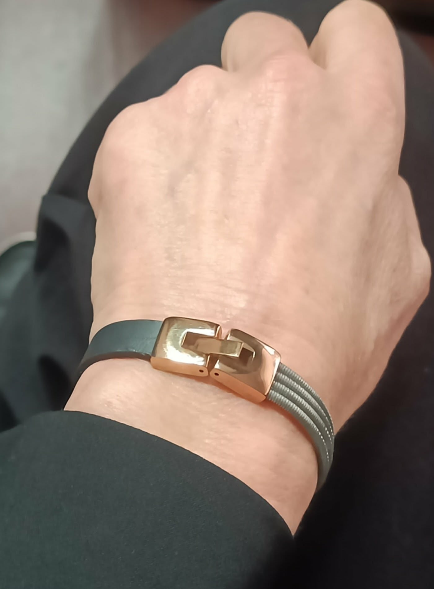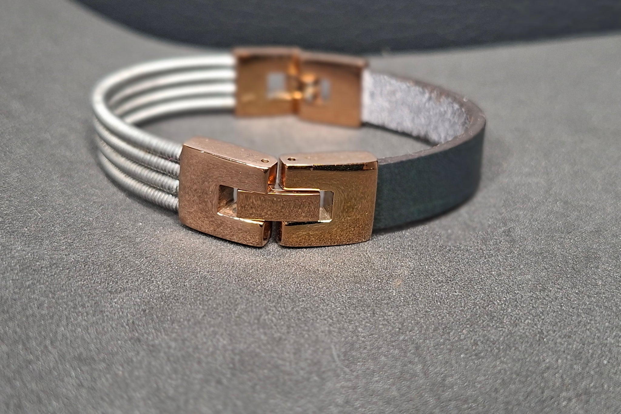 Materials:– Reclaimed bass strings– Designer-quality leather– Stainless steel
