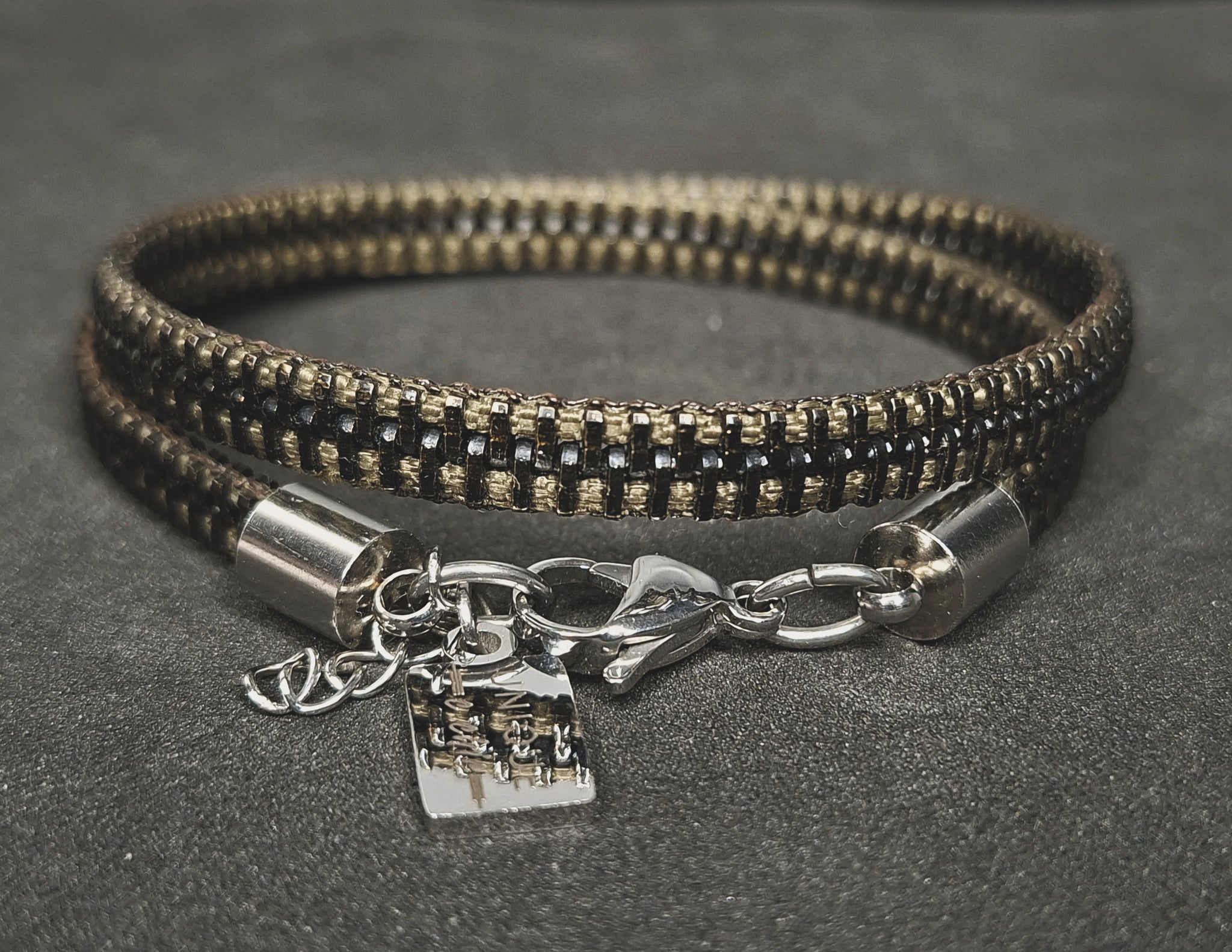 Khaki & black metal Zipper